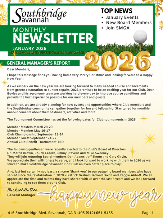 When renowned golf architect Rees Jones chose to create a masterpiece in the southern Georgia woodlands, Southbridge Savannah Golf Club in Savannah, Georgia, was born. Southbridge has earned its reputation as the top-rated golf course in Savannah, thanks to Jones’ clever use of water features alongside the stunning scenery of Georgia's pine and live oak forests. The expansive, rolling greens are protected by grassy mounds and positioned bunkers, ensuring a fair challenge and a delightful golfing experience for players of all abilities.